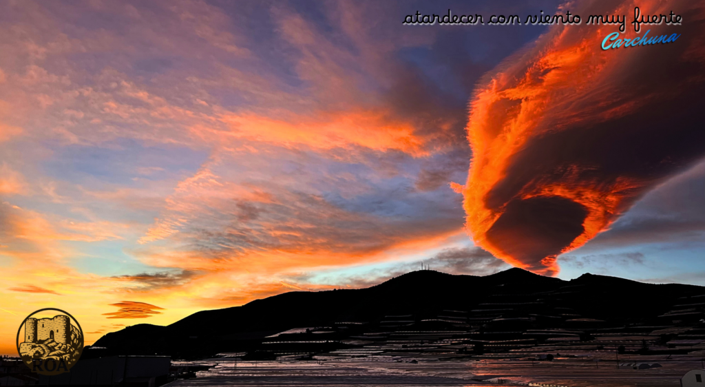 Y en cuanto a las fotos de esta noche que acompañan a mi carta, a última hora he cambiado de decisión… iba a poner dos de mi fototeca pero a las 6 se ha levantado un viento fortísimo, que aún sigue, y desde mi terraza (que el viento me lo ha puesto muy difícil), he tomado estas dos, al atardecer; para mi la segunda espectacular por la forma de esa nube lenticular que parece de película de terror. Feliz velada de domingo.