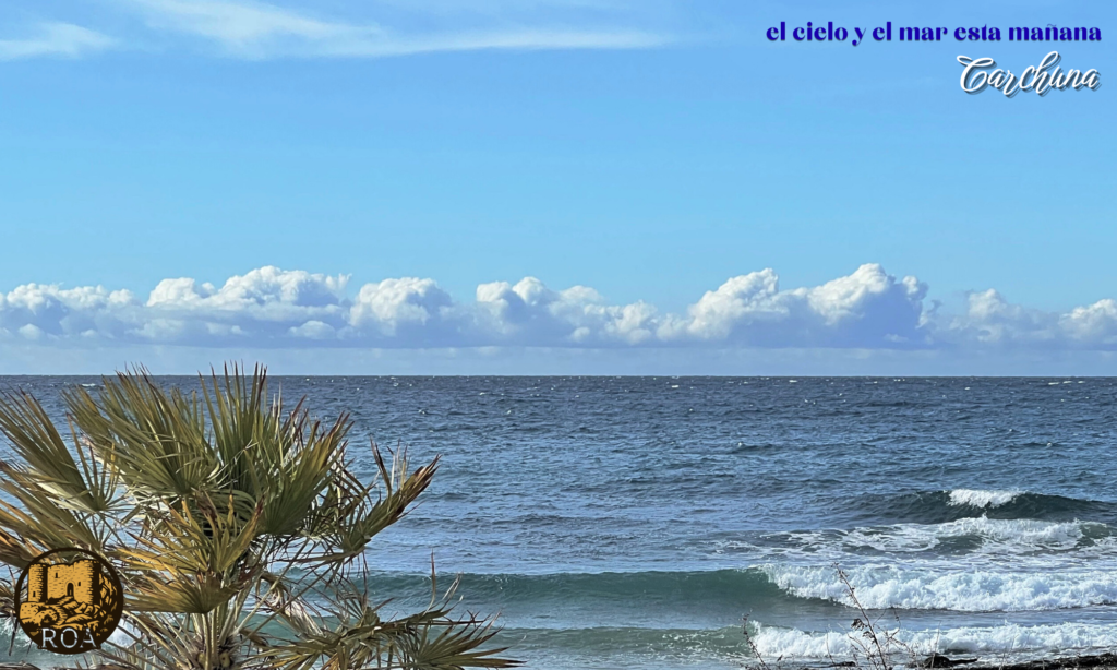 Y, como es habitual los jueves, mi primera foto es una alegoría sobre Motril, compuesta sobre una de mis fotos, de la Iglesia del Cerro entre dos troncos de palmera. Mi segunda foto es de esta misma mañana, una mañana fría en la que la nieve se ha asomado a la Costa Tropical desde la Sierra de Lújar…¡y vaya cómo se notaba! El cielo desconcertaba… mirando a levante cielos muy grises pero mirando a poniente, casi despejados… mi foto está tomada mirando hacia el horizonte del mar de Alborán. Feliz velada de jueves.