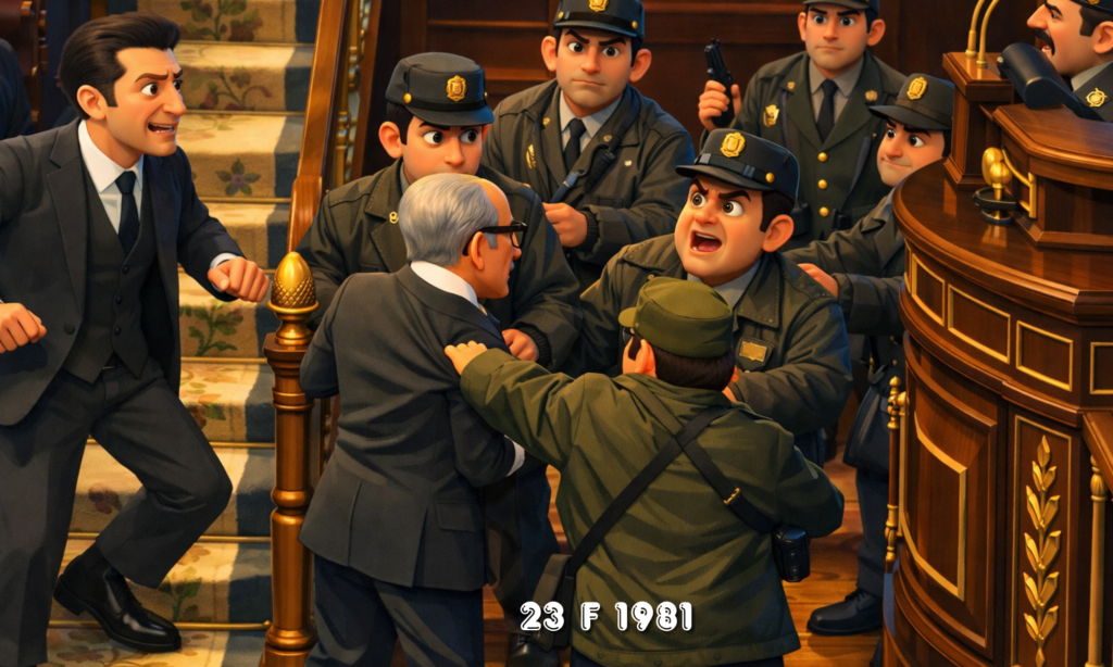 «Aquel 23 de febrero de 1981 quedó grabado a fuego en la memoria colectiva de España como el instante en que el tiempo pareció detenerse bajo el peso del metal y el silencio del miedo. La joven democracia española, que apenas empezaba a caminar con paso firme tras décadas de dictadura, se vio súbitamente asaltada por el estruendo de las ráfagas de subfusil en el Congreso de los Diputados. El teniente coronel Antonio Tejero, al mando de un grupo de guardias civiles, irrumpía en la sesión de investidura de Leopoldo Calvo-Sotelo al grito de «¡quieto todo el mundo!», una frase que se convirtió en el eco de una amenaza que buscaba hacer retroceder las manecillas del reloj histórico.